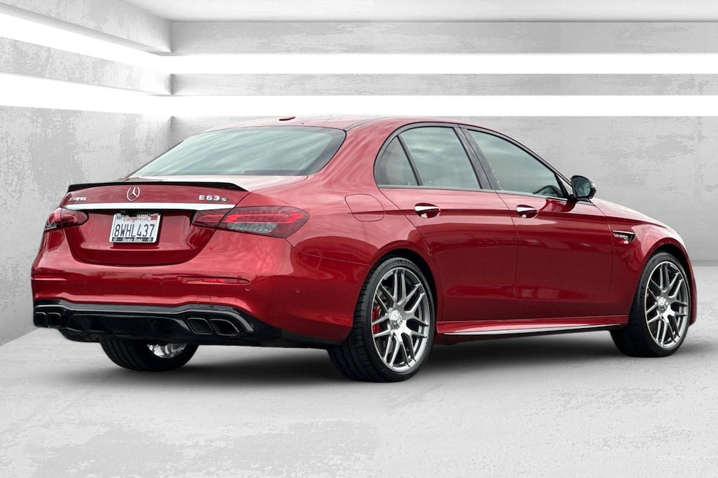 Clean CARFAX. Certified. This 2021 designo Cardinal Red Metallic Mercedes-Benz E 63 S AMG® AWD is well equipped and includes these features and benefits: AMG® Exterior Carbon Fiber Package II (AMG® Carbon Fiber Exterior Mirror Covers and AMG® Carbon Fiber Trunk Lid Spoiler), AMG® Night Package (AMG® Exterior Night Styling and Omission Heat-Insulating Dark-Tinted Glass), Driver Assistance Package (Active Brake Assist w/Cross-Traffic Function, Active Distance Assist DISTRONIC®, Active Lane Change Assist, Active Speed Limit Assist, Active Steering Assist, Extended Restart by Stop & Go, PRE-SAFE® PLUS Rear End Collision Protection, PRESAFE® Impulse Side, Route Based Speed Adaptation, and Speed Limit Assist), Exterior Lighting Package (Adaptive Highbeam Assist and LED Intelligent Light System), Sun Protection Package (Power Rear Window Sunshade and Rear Window Manual Roller Blinds), Mercedes-Benz Certified, 4MATIC®, 13 Speakers, 4-Way Power Lumbar Support, 4-Wheel Disc Brakes, ABS brakes, Adaptive suspension, Air Conditioning, Alloy wheels, AM/FM radio: SiriusXM, AMG® Exclusive Nappa Leather Upholstery, Android Auto®, Anti-whiplash front head restraints, Apple CarPlay®, Apple CarPlay®/Android Auto®, Auto tilt-away steering wheel, Auto-dimming door mirrors, Auto-dimming Rear-View mirror, Auto-leveling suspension, Automatic temperature control, Brake assist, Bumpers: body-color, Burmester® Surround Sound System, Center Console in Black Piano Lacquer, Delay-off headlights, Driver door bin, Driver vanity mirror, Dual front impact airbags, Dual front side impact airbags, Electronic Stability Control, Emergency communication system: Mercedes me connect, Four wheel independent suspension, Front anti-roll bar, Front Bucket Seats, Front Center Armrest, Front dual zone A/C, Front reading lights, Fully automatic headlights, Garage door transmitter: HomeLink, Head restraints memory, Heated & Ventilated Front Seats, Heated door mirrors, Heated front seats, Heated steering wheel, Illuminated entry, Knee airbag, Leather Shift Knob, Low tire pressure warning, Memory seat, Navigation System, Occupant sensing airbag, Outside temperature display, Overhead airbag, Overhead console, Panic alarm, Passenger door bin, Passenger vanity mirror, Power adjustable front head restraints, Power adjustable rear head restraints, Power door mirrors, Power driver seat, Power Front Seats, Power moonroof, Power passenger seat, Power steering, Power windows, Premium audio system: MBUX, Radio data system, Radio: MBUX Infotainment & Navigation System, Rain sensing wipers, Rear anti-roll bar, Rear fog lights, Rear reading lights, Rear seat center armrest, Rear window defroster, Remote keyless entry, Security system, SiriusXM Radio, Smartphone Integration, Speed control, Speed-sensing steering, Split folding rear seat, Spoiler, Sport steering wheel, Steering wheel memory, Steering wheel mounted audio controls, Steering Wheel Shift Paddles, Tachometer, Telescoping steering wheel, Tilt steering wheel, Traction control, Trip computer, Turn signal indicator mirrors, Variably intermittent wipers, Ventilated front seats, Weather band radio, and Wheels: 20" AMG® Twin 5-Spoke w/Grey Accents. 4.0L V8 4MATIC®, Active Brake Assist w/Cross-Traffic Function, Active Distance Assist DISTRONIC®, Active Lane Change Assist, Active Speed Limit Assist, Active Steering Assist, Adaptive Highbeam Assist, AMG® Carbon Fiber Exterior Mirror Covers, AMG® Carbon Fiber Trunk Lid Spoiler, AMG® Exterior Carbon Fiber Package II, AMG® Exterior Night Styling, AMG® Night Package, Driver Assistance Package, Extended Restart by Stop & Go, Exterior Lighting Package, LED Intelligent Light System, Omission Heat-Insulating Dark-Tinted Glass, Power Rear Window Sunshade, PRE-SAFE® PLUS Rear End Collision Protection, PRESAFE® Impulse Side, Rear Window Manual Roller Blinds, Route Based Speed Adaptation, Speed Limit Assist, Sun Protection Package.