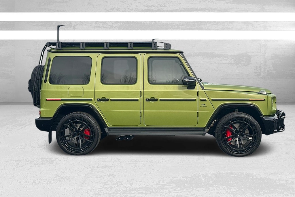 Check out this custom 1 of 1 G63! *MANUFAKTUR Made To Measure Custom paint "Citrus Green Metallic", *Full body paint protection film*, *Full body ceramic coating*, *Custom 23" Vossen Wheels*, (4) All-Season Floor Mats w/G Logo, AMG® ACTIVE RIDE CONTROL Suspension, AMG® Night Package (P56), AMG® Night Package Plus, AMG® Offroad Package PRO, AMG® Offroad Package PRO (TP2), AMG® Specific Exhaust System in Black, AMG® Star Set, Animated LED Logo Projectors, Brush Guard in Black, Drive-Dynamic Multicontour Front Seats w/Massage, ENERGIZING Package Plus, Exclusive Interior Package Plus, Exclusive Nappa Leather Trim, Exterior Lettering in Black, Exterior Mirrors Painted in Obsidian Black, Front Ventilated Seats, Front wheel independent suspension, MANUFAKTUR Black Running Boards, MANUFAKTUR Interior Package Plus (P77), Mercedes-Benz Star in Black, PROFESSIONAL Roof Rack, Rapid Heating Front Seats, Rear Mudflaps, Rubber Mat for Load Compartment, Rubber Mat Set, Seat Comfort Package, Spare Wheel Cover in Obsidian Black, Underguard in Obsidian Black, Wheel Arches & Bumpers in Black.