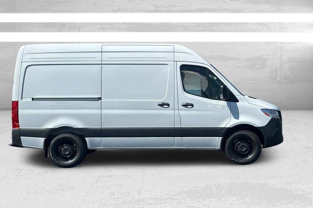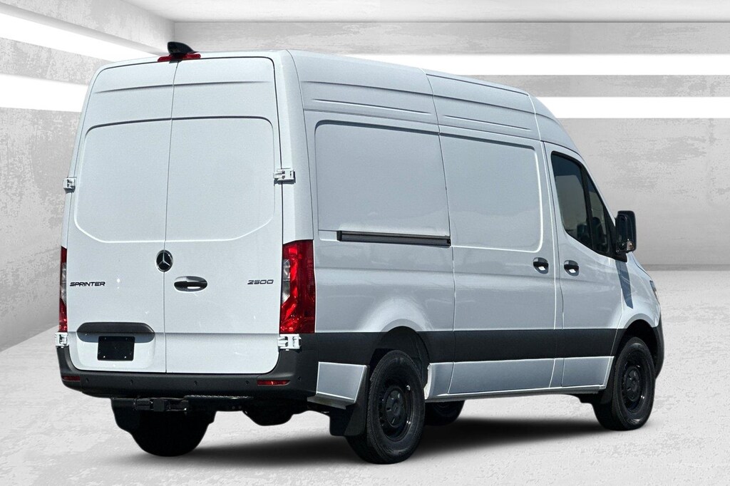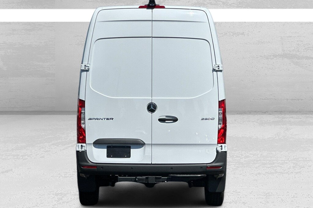 This 2025 Artic White Mercedes-Benz Sprinter 2500 Cargo 144 WB RWD is well equipped and includes these features and benefits: Comfort Package, Driver Convenience Package (Driver Seat Base 12V Power Outlet), MBUX Package, Parking Package, 16" x 6.5J Steel Wheels, 3.923 Axle Ratio, 4-Wheel Disc Brakes, 5 Speakers, ABS brakes, Active Distance Assist DISTRONIC®, Air Conditioning, AM/FM radio, Armrest for Driver's Seat, Armrest for Front Passenger's Seat, Blind Spot Assist, Bodyside moldings, Brake assist, Co-Driver Thorax-Pelvis Sidebag, Driver door bin, Driver's Seat Mounted Armrest, Driver's Seat Occupancy Sensor, Dual front impact airbags, Dual front side impact airbags, Electronic Stability Control, Emergency communication system, Exterior Parking Camera Rear, Front anti-roll bar, Front Bucket Seats, Front Passenger Airbag, Front wheel independent suspension, Fully automatic headlights, Heated door mirrors, Heated Driver's Seat, Heated front seats, High Roof, Illuminated entry, Low tire pressure warning, Maturin Fabric Upholstery, No Factory Installed Flooring, Outside temperature display, Overhead airbag, Overhead console, Passenger door bin, Passenger seat mounted armrest, Power door mirrors, Power steering, Power windows, Radio: Standard, Rain sensing wipers, Rear anti-roll bar, Remote keyless entry, Roof Rack Mounting Rails, Speed control, Stabilization Level I, Standard Driver Seat, Standard Front Passenger Seat, Steering wheel mounted audio controls, Tachometer, Tilt steering wheel, Traction control, Trailer Hitch, Trailer Hitch Rear Half-Sided Step, and Variably intermittent wipers. 2.0L I4 Diesel Turbocharged High Output